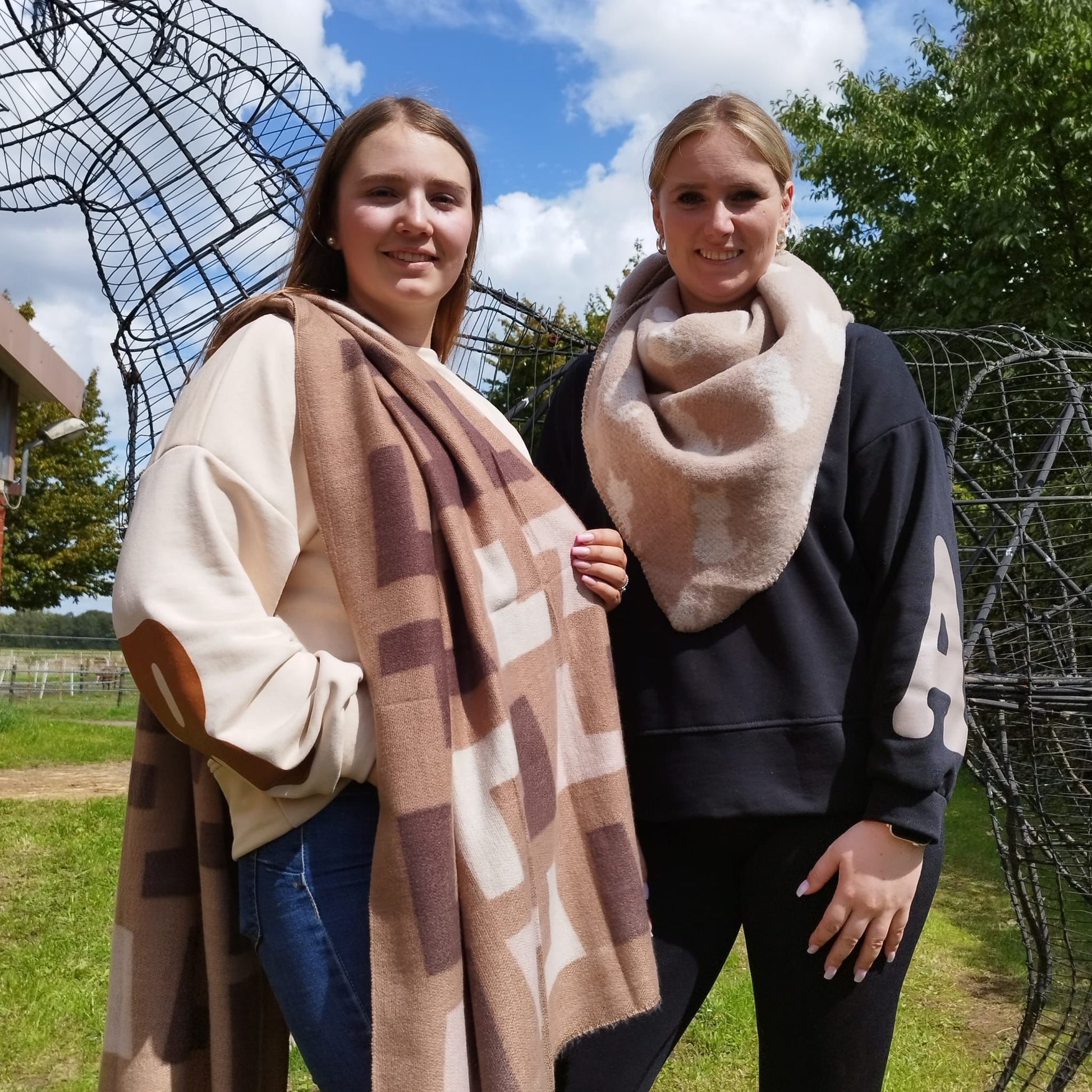 Weicher Oversize Schal mit Buchstaben in verschiedenen Beige braun Tönen